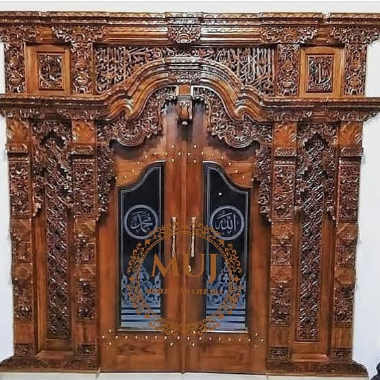 Gebyok Ukir Jepara dengan bahan baku kayu jati pilihan dan dipadukan dengan fininsing natural menjadikan pintu Gebyok semakin indah dan menawan. Nuansa klasik moderen dan natural akan tersaji pada teras rumah anda.